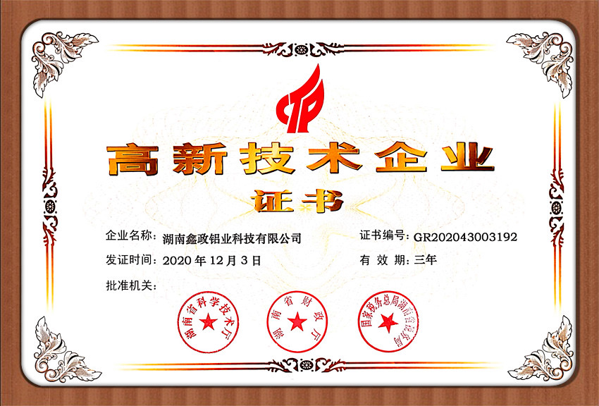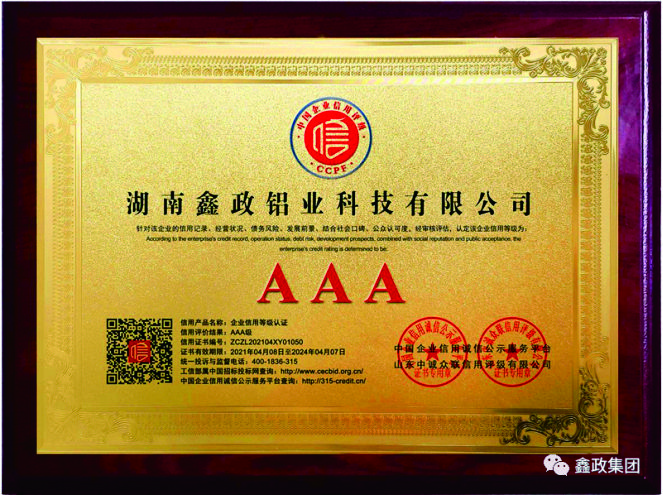瀏覽次數(shù):1547近日,鑫政集團子公司鑫政鋁業(yè)喜報頻傳,再獲殊榮。根據(jù)湖南省2020年高新技術(shù)企業(yè)認定規(guī)定,經(jīng)專家評審、權(quán)威公示等程序,鑫政鋁業(yè)憑借產(chǎn)品研發(fā)、科研人才培養(yǎng)、質(zhì)量把控等方面的出色表現(xiàn),榮獲“高新技術(shù)企業(yè)”榮譽稱號。同時,經(jīng)過中國企業(yè)信用誠信公示服務(wù)平臺的嚴格審核,該公司榮獲“AAA級企業(yè)信用等級”證書。