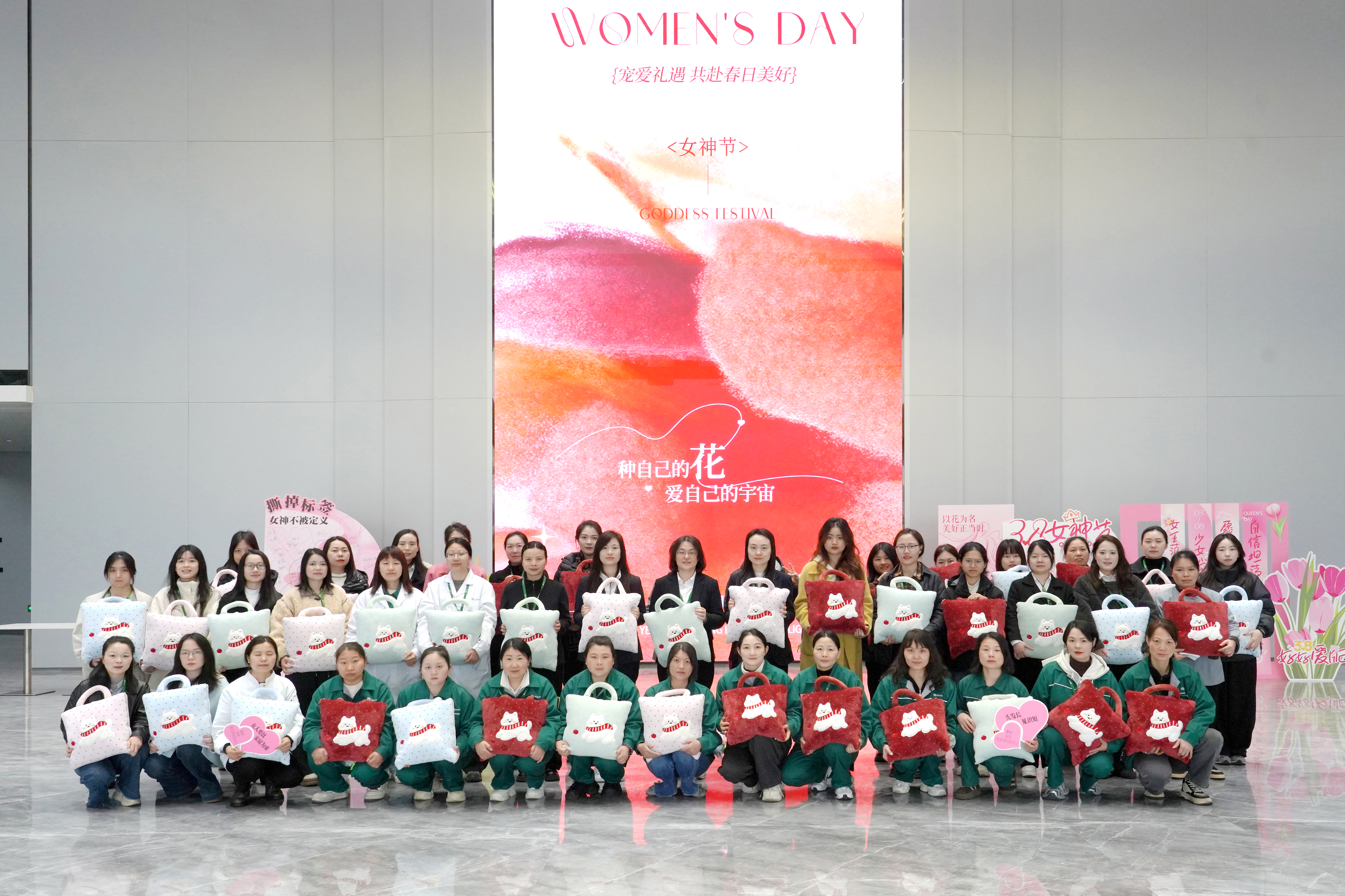 活動(dòng)最后,全體女員工在LED主屏幕前集合,隨著快門聲響起,2026年鑫政女神節(jié)的全家福被永久記錄。